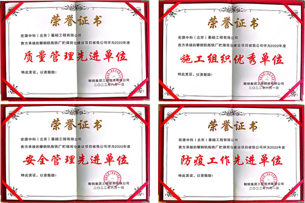 攀鋼釩煉鐵廠貯煤筒倉建設項目在工程建設過程中面對國家疫情防控緊張、施工現場地質情況復雜、工期緊、施工條件差等不利因素,項目部迎難而上、精心部署扭轉了施工被動局勢。在管理和服務上充分發揮宏源中科“以客戶為中心”的管理理念,受到了業主的肯定及表揚,并授予了各項管理榮譽證書,為后期更多的合作奠定基礎。